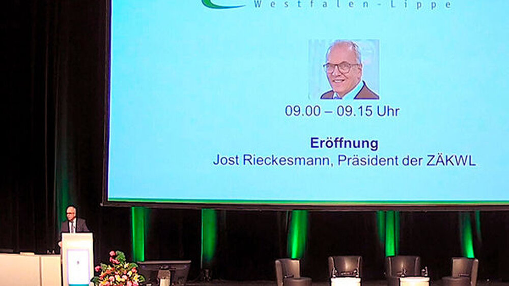 Jost Rieckesmann, Präsident der Zahnärztekammer Westfalen-Lippe, begrüßte heute Morgen in Gütersloh die rund 400 Zahnärztinnen und Zahnärzte vor Ort sowie mehr als 800 online-Teilnehmende. Der Zahnärztetag Westfalen-Lippe wird dieses Jahr erstmalig als Hybridveranstaltung abgehalten, nachdem er vergangenes Jahr als reine online-Veranstaltung verlief und 2020 ganz ausfallen musste.