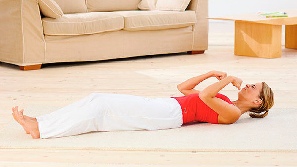 Die linke Hand zur Faust ballen und für 5 bis 7 Sekunden anspannen, dann 20 bis 30 Sekunden entspannen. Zur anderen Hand wechseln und nach dem gleichen Prinzip an- und entspannen. Danach den linken Arm strecken und die Spannung halten. Wieder lösen und zum rechten Arm übergehen. Wichtig: An jede der folgenden Übungen schließt sich eine Entspannungsphase an.