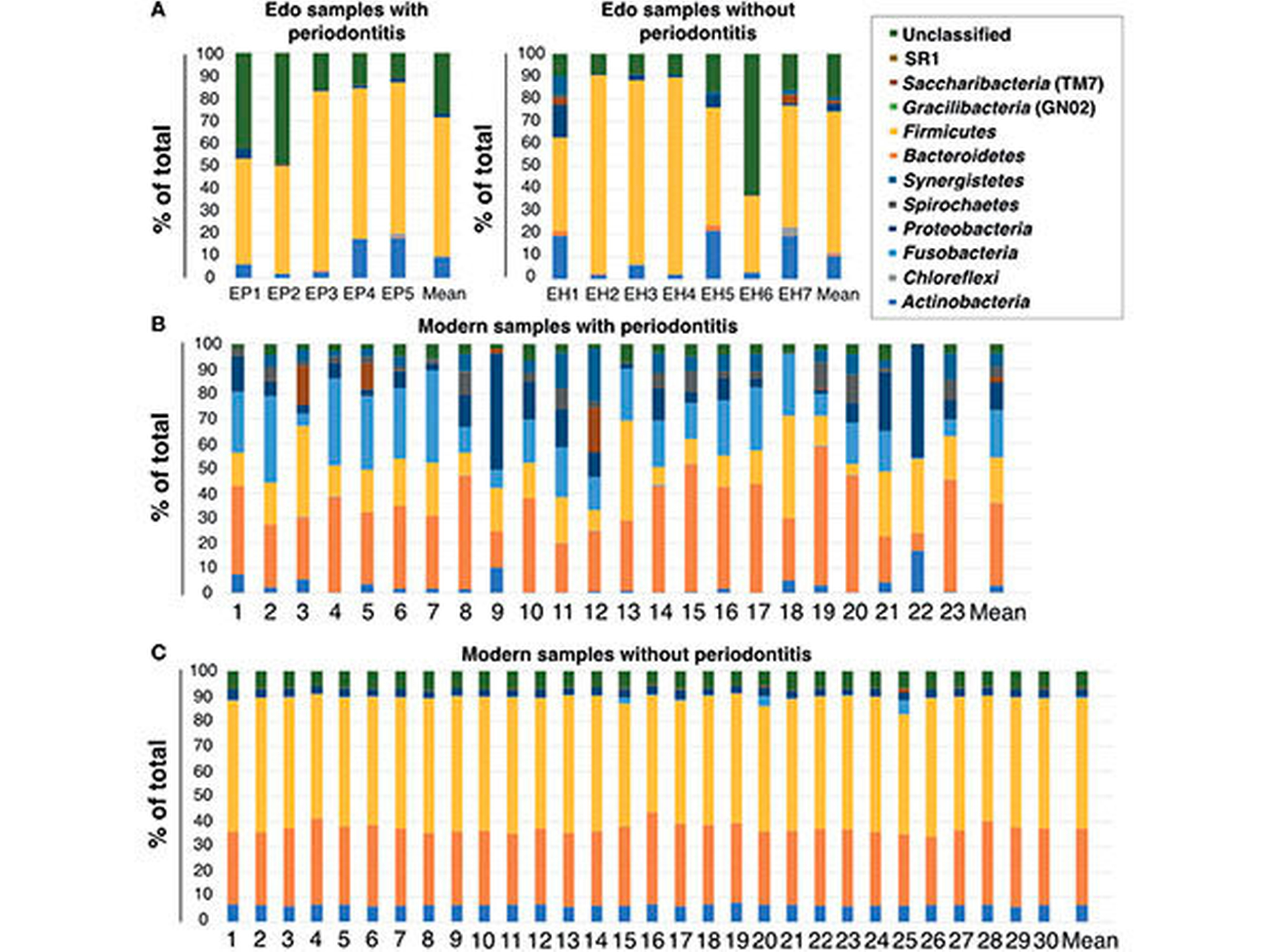 Unerwarteterweise entdeckten die Forscher bei 5 der 12 Skelette (42 Prozent) aus der Edo-Ära eine Parodontalerkrankung. Somit scheint die Prävalenz von Zahnfleischerkrankungen bei den Menschen in der Edo-Ära ähnlich hoch gewesen zu sein wie in der heutigen Zeit: 37,3 Prozent der Japaner in den Vierzigern litten im Jahr 2005 an Zahnfleischerkrankungen. Die Stichprobengröße sei jedoch zu klein ist, um weitreichende Schlüsse zu ziehen, räumen die Autoren ein.