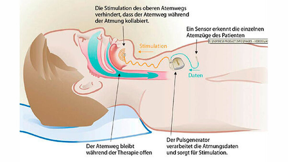 „Insgesamt sind nur drei kleinen Hautschnitte bei diesem Eingriff nötigt, der unter Vollnarkose vorgenommen wird“, erläutert Schneider. In vier Wochen wird das Gerät aktiviert. Der Patient kann es dann vor dem Schlafen gehen mit einer Fernbedienung ein- und morgens wieder ausschalten. Nach weiteren vier Wochen der Eingewöhnung wird der Schrittmacher im klinikeigenen Schlaflabor kontrolliert. Die Batterie des geplanten Stimulators muss erst nach etwa zehn Jahren ausgetauscht werden.