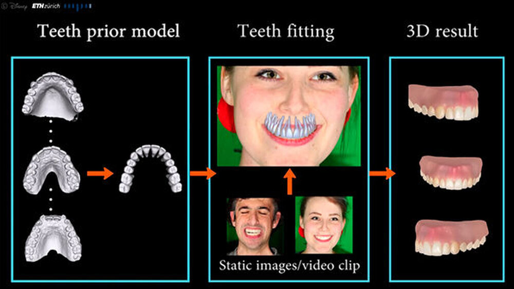 Ein Forscher-Team von Disney hat eine Software entwickelt, mit der man die Zähne von echten Personen für Animationsfilme - oder medizinische Anwendungen - mithilfe weniger Fotos oder eines kurzen Handy-Videos vom Mundesinneren realistisch rekonstruieren kann. Und zwar selbst dann, wenn einige Zähne durch die Ränder des Mundes oder durch andere Zähne verdeckt werden.