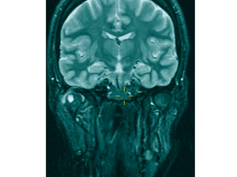 Im Rahmen der klinischen Untersuchung zeigte sich die sonografische Darstellung des Kiefergelenks und dessen angrenzender Strukturen als unzureichend, so dass zur weiteren Diagnostik eine Kontrastmittel-gestützte MRT-Untersuchung des Kiefergelenks eingeleitet wurde (Abbildung 1).