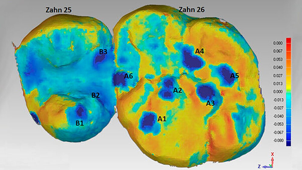 Die direkte Oberflächendigitalisierung im Patientenmund kann den Verfahrensweg erheblich vereinfachen und beschleunigen und wäre nicht nur für Wissenschaftler von Bedeutung. Das Erkennen von Substanzverlusten ist für den Patienten hilfreich; die Verschleißanalyse ist eine künftige Option für die Therapiefindung.