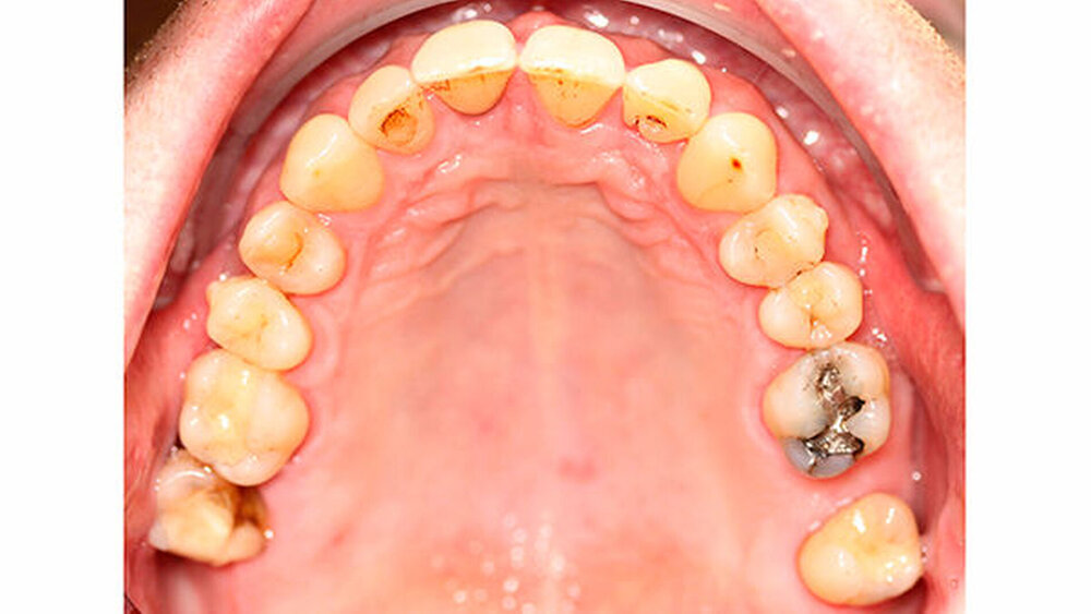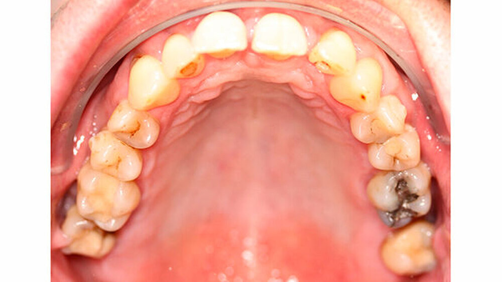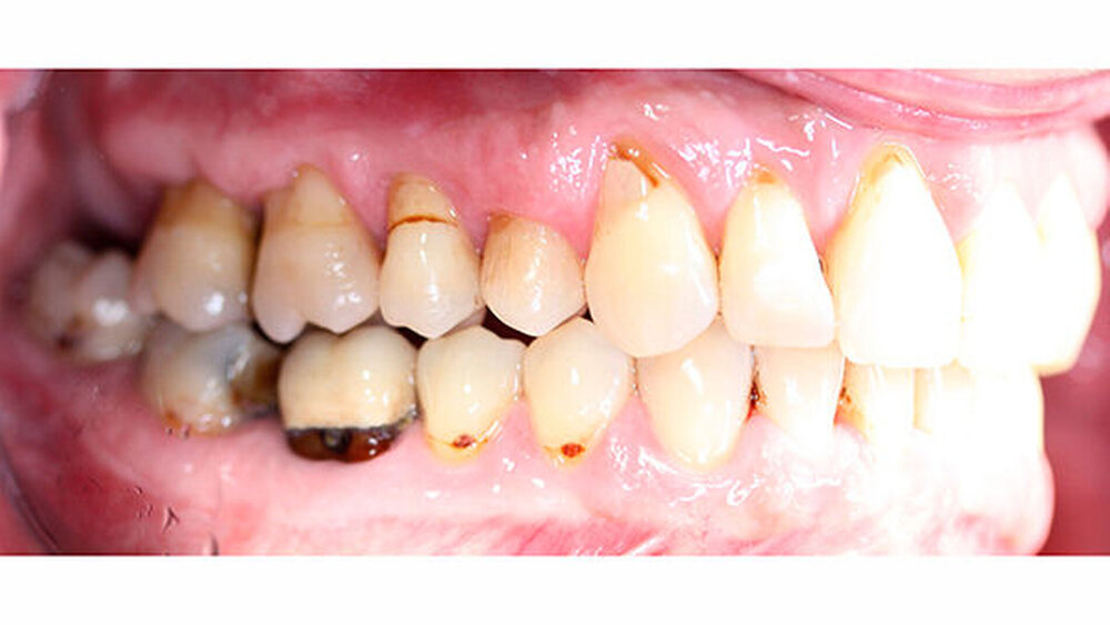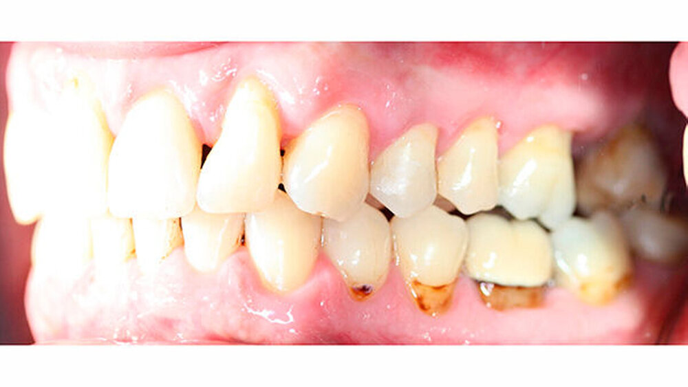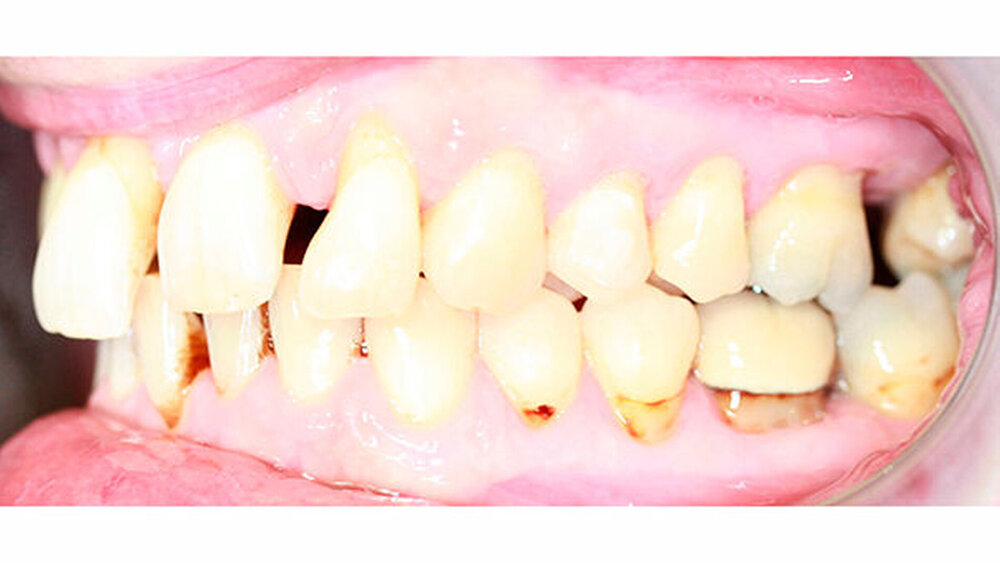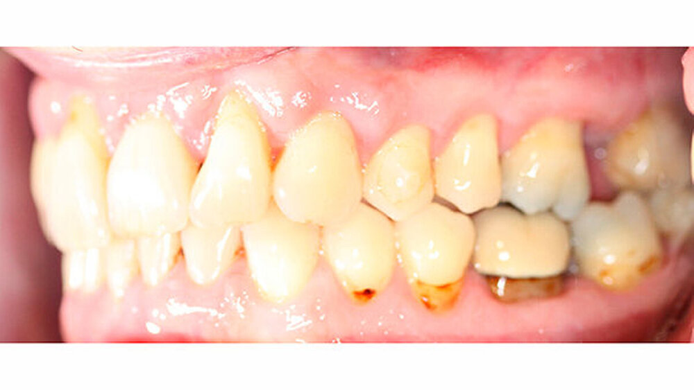 Zudem wurde die Diagnose einer Parodontitis gestellt, die eine Rücküberweisung an den Hauszahnarzt erforderlich machte (Abbildung 2).