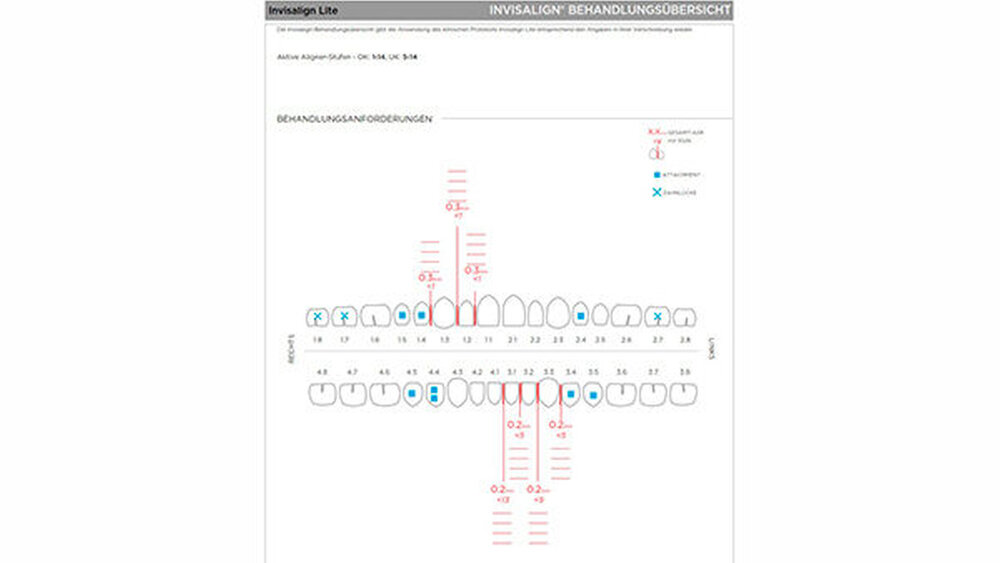 Somit fiel in diesem Fall unsere Wahl auf die kieferorthopädische Therapie mit Alignern (Invisalign®, Align Technology, Inc., Amsterdam, Niederlande). Das Konzept dieser Aligner basiert auf einer Idee von H.D. Kesling von 1945, in dem er aus mehreren aufeinander aufbauenden Set up-Modellen elastische Geräte herstellte, die schrittweise zum eigentlichen Behandlungsziel führten. Durch den herausnehmbaren Charakter dieser Geräte wird eine uneingeschränkte Zahnpflege ermöglicht. Somit sind Aligner hier festsitzenden Klammern tendenziell überlegen [Göz, 2010].