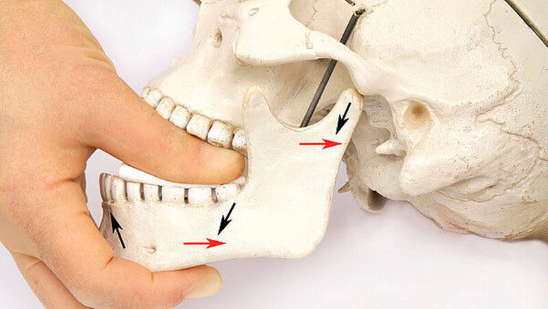 In seltenen Fällen ist eine Fremdmanipulation zur Reponierung notwendig (Abbildung 1). Auch besteht insbesondere nach Eingriffen, die eine langanhaltende weite Mundöffnung erfordern (Entfernung von Weisheitszähnen, Wurzelbehandlungen im Seitenzahnbereich) das Risiko der Kondylusluxation. Eine spontane Luxation ohne Autoreposition ist bei Jugendlichen und Erwachsenen selten und tritt aufgrund des veränderten Muskeltonus und der Abflachung des Tuberculum articulare vorwiegend bei pflegebedürftigen Senioren in Ruhephasen auf.