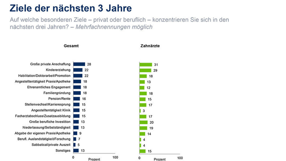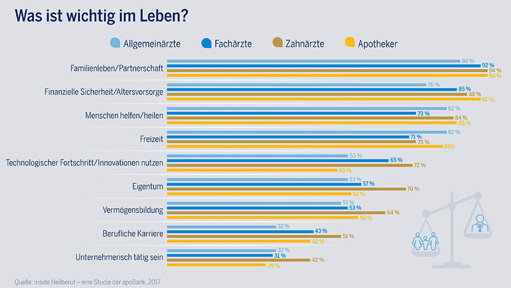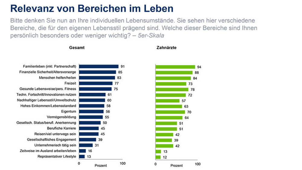 Wie wollen Zahnärzte leben, was ist ihnen wichtig im Job? Und wie unterscheiden sie sich dabei von anderen Heilberuflern? Die apoBank hat 500 Ärzte, Zahnärzte und Apotheker befragt.