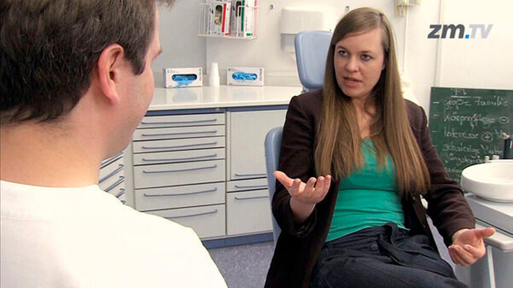 Zu Beginn einer erfolgreichen Therapie steht der Dialog zwischen Zahnarzt und Patient. Aber was zeichnet gute Kommunikation aus? Wir zeigen die einzelnen Gesprächsabschnitte mit einer Schauspielerin als Patientin. Teil II: Der Zahnarzt erklärt der Patientin, wie die Zahnzwischenräume gereinigt werden und beantwortet ihre Fragen.