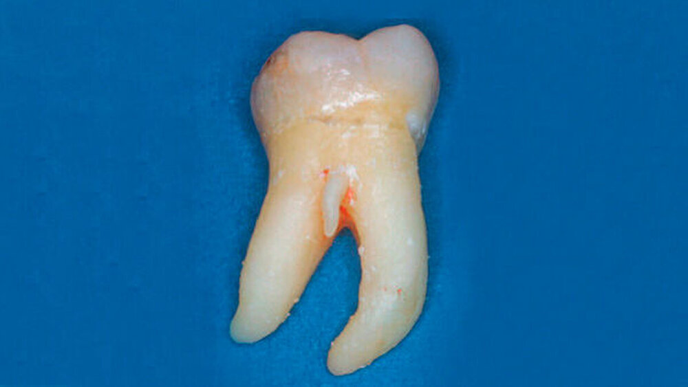 Ein Achter mit männlichem Anex: Ziemlich erstaunt war Tobias Günkinger, der damals als Assistenzarzt in der Praxis Krusche und Partner in Neckarsteinach arbeitete, als er einem Patienten einen äußerst männlichen Zahn zog.