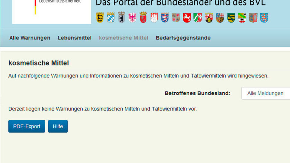 Im Zuge der Erweiterung des Portals wurde auch das Design überarbeitet und die Seite für die Nutzung mobiler Endgeräte optimiert, heißt es in der Mitteilung weiter. Gleich auf der Startseite des Portals können Nutzer auswählen, ob sie sich Warnungen zu den drei neuen Bereichen Lebensmitteln, kosmetischen Mitteln oder Bedarfsgegenständen anzeigen lassen möchten. Die aktuellen Warnungen lassen sich auch nach betroffenen Bundesländern filtern. Verbraucher können sich automatisch per RSS-Feed benachrichtigen lassen, wenn eine neue Warnung veröffentlicht wird. Auch auf dem Twitter-Kanal @LMWarnung werden automatisch Hinweise zu neuen Warnungen veröffentlicht, erklärt das BVL.