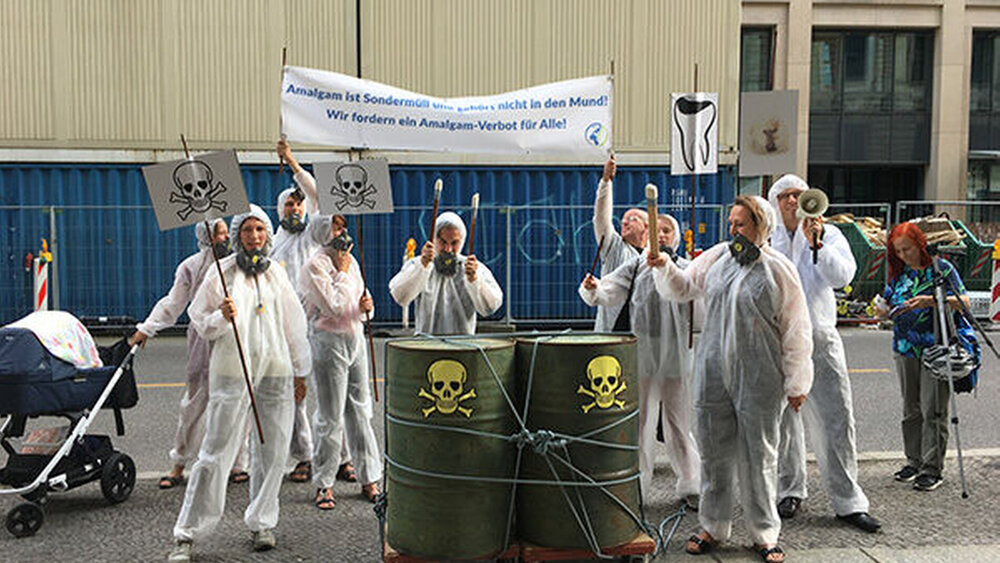Gestern, 17:30 Uhr: Protest vor dem Büro der Kassenzahnärztlichen Bundesvereinigung in der Berliner Behrenstraße 42 - "Amalgam ist Sondermüll und gehört nicht in den Mund!" Schade, dass wir Euch nicht die neue zm in die Hand drücken konnten - mit unserer Titelstory zu den neuen Regeln für Amalgam.