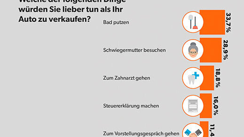 Fast 62 Prozent der Deutschen haben in ihrem Leben schon mal ein Auto verkauft. Spaß hat es ihnen offensichtlich nicht gemacht. So antwortete laut einer repräsentative Umfrage des Meinungsforschungsinstituts puls im Auftrag von mobile.de. ein Drittel, dass sie lieber ihr Bad putzen würden. Fast 29 Prozent würden eher ihre Schwiegermutter besuchen. Und knapp 19 Prozent zum Zahnarzt gehen.