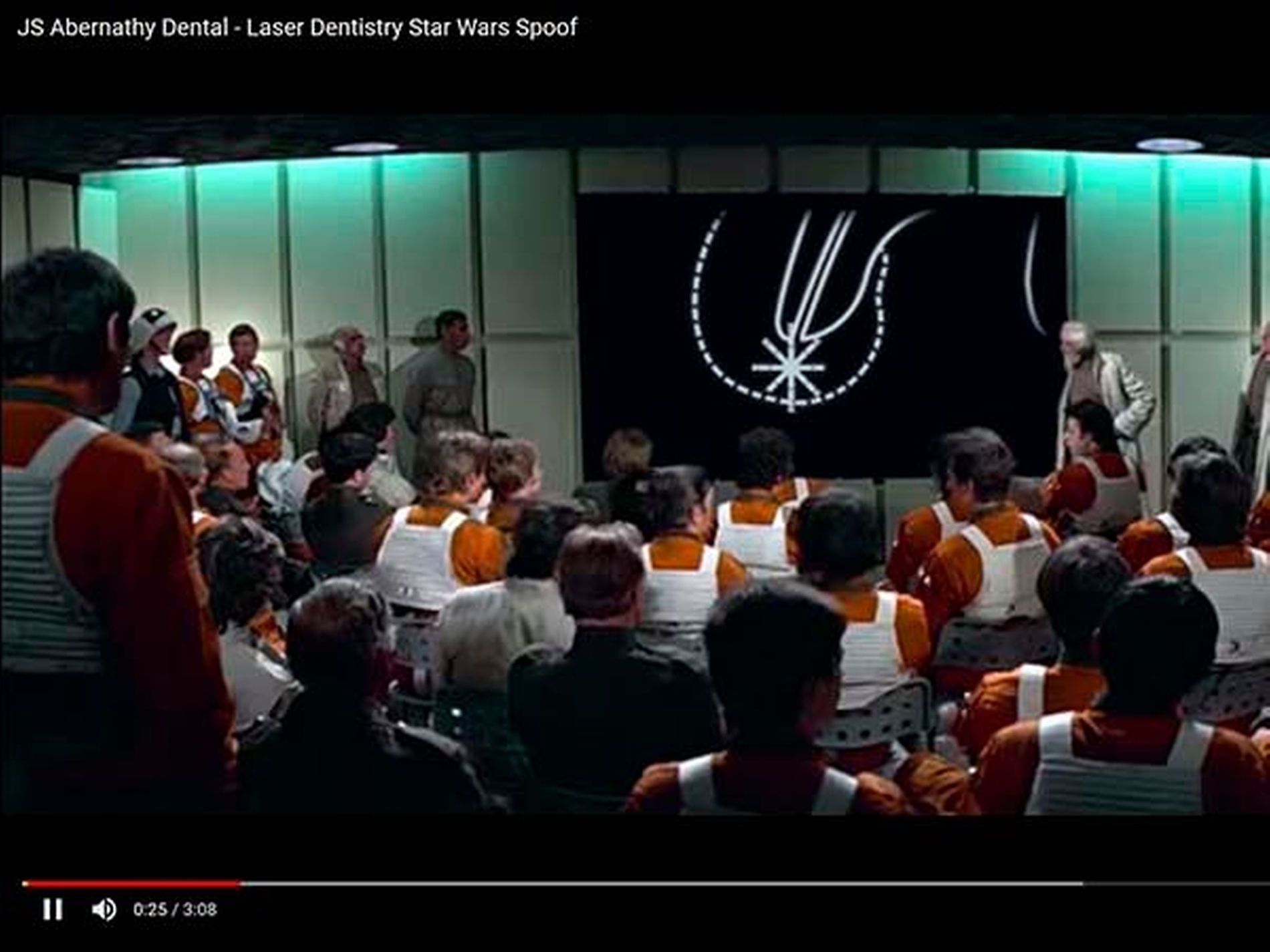 Es ist der Traum vieler Fans: einmal mithilfe von einem Greenscreen, aufwendiger Beleuchtung und nachträglichem Compositing Teil der Star-Wars-Saga zu sein. Der US-amerikanische Zahnarzt Dr. Abernathy hat genau das geschafft - mit einem professionellen Werbevideo für die Wurzelkanalaufbereitung mittels Dentallaser.