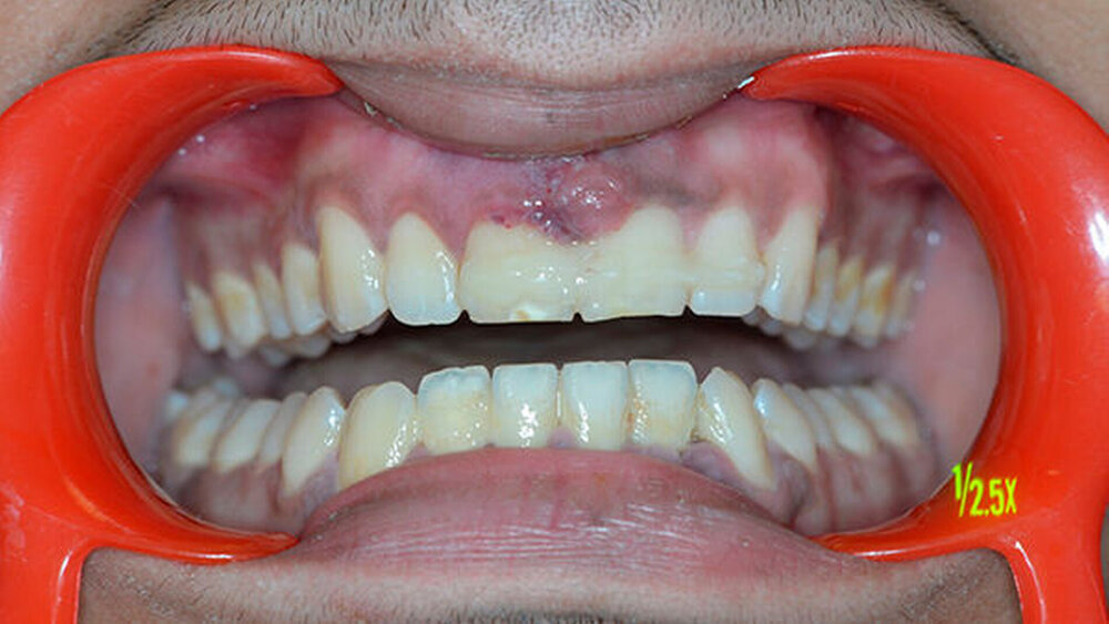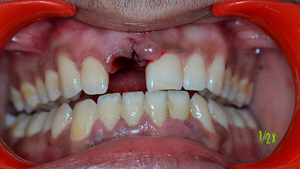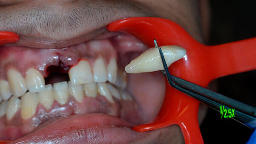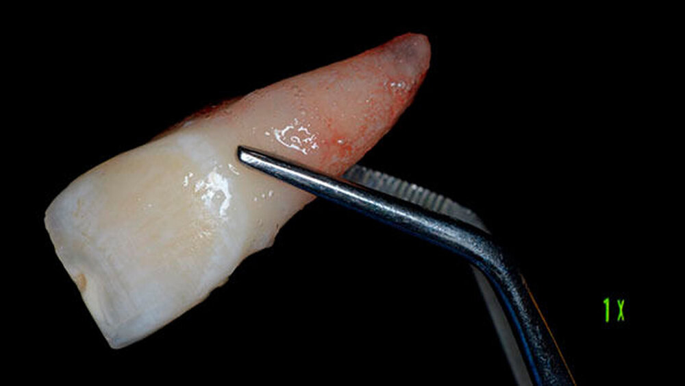 Der Patient hatte Glück im Unglück: Er fand den Zahn im Schnee. Und wickelte ihn sorgfältig in ein Papiertaschentuch. Dann transportierte er ihn unter für das desmodontale Gewebe ungünstigen Bedingungen in die Praxis.