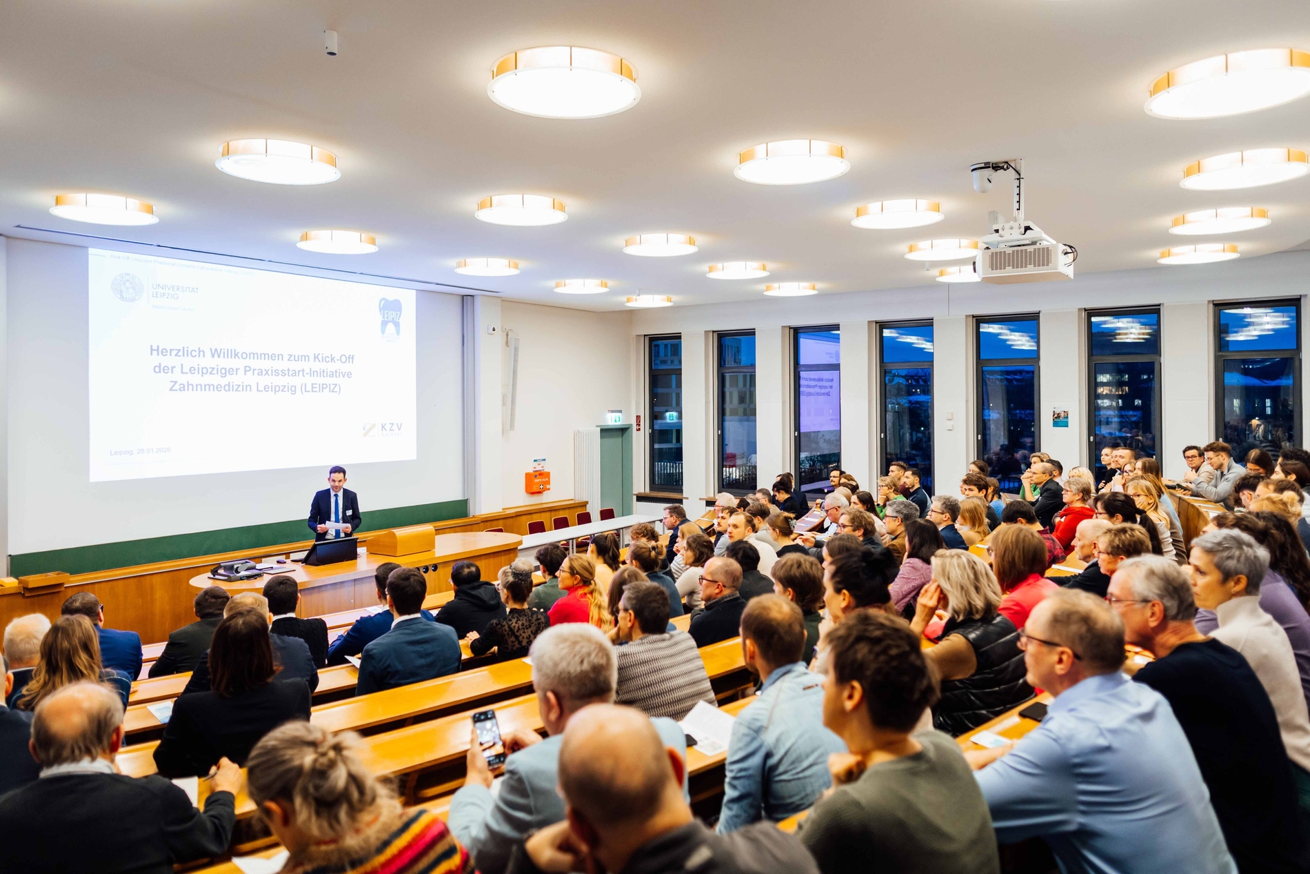 Vorgestellt wurde LEIPIZ am 28. Januar im Rahmen einer Auftaktveranstaltung an der Universität Leipzig. Zahlreiche Studierende, niedergelassene Zahnärztinnen und Zahnärzte sowie Vertreterinnen und Vertreter der KZVS und der Universität nahmen teil. Das Grußwort sprach der Sächsische Staatsminister für Wissenschaft, Kultur und Tourismus, Sebastian Gemkow (CDU), der die Bedeutung praxisnaher Ausbildung für die Sicherstellung der medizinischen Versorgung hervorhob.