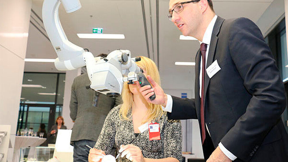 Zeiss entwickelt seit den 2000er-Jahren Mikroskope und Lupenbrillen für die Zahnmedizin. Der Standort in Oberkochen ist Produktionsstätte von Visualisierungslösungen wie den medizinischen Kopflupen EyeMag, dem Operationsmikroskop S100/OPMI pico und dem besonders ergonomischen Mikroskop S7/OPMI PROergo, die in einem Hands-on-Kurs vor Ort ausprobiert werden durften. Um auch Zahnärzte an die Geräte heranzuführen, bietet das Unternehmen zudem regelmäßig Kurse im 2013 eröffneten Medical Solution Center an.