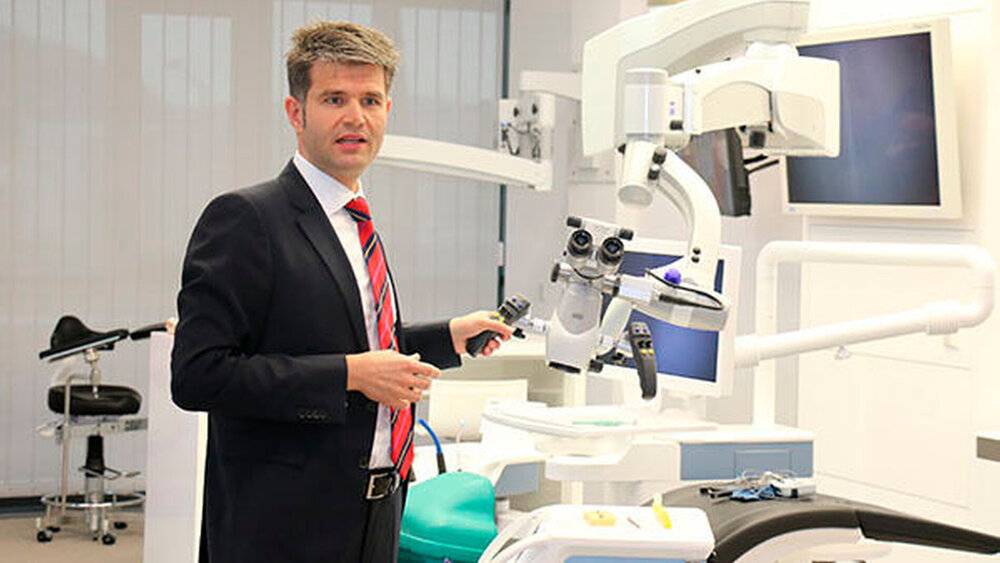 „Visualisierung verändert Therapien und kann Entwicklungen in der Medizin vorantreiben“, war sich Dirk Brunner, Leiter der Strategischen Geschäftseinheit Mikrochirurgie der Carl Zeiss Meditec AG, bei seinem einleitenden Statement sicher. Was in der Neurochirurgie und der Ophthalmologie bereits zum medizinischen Alltag gehört, hält nun auch verstärkt Einzug in die Zahnheilkunde.