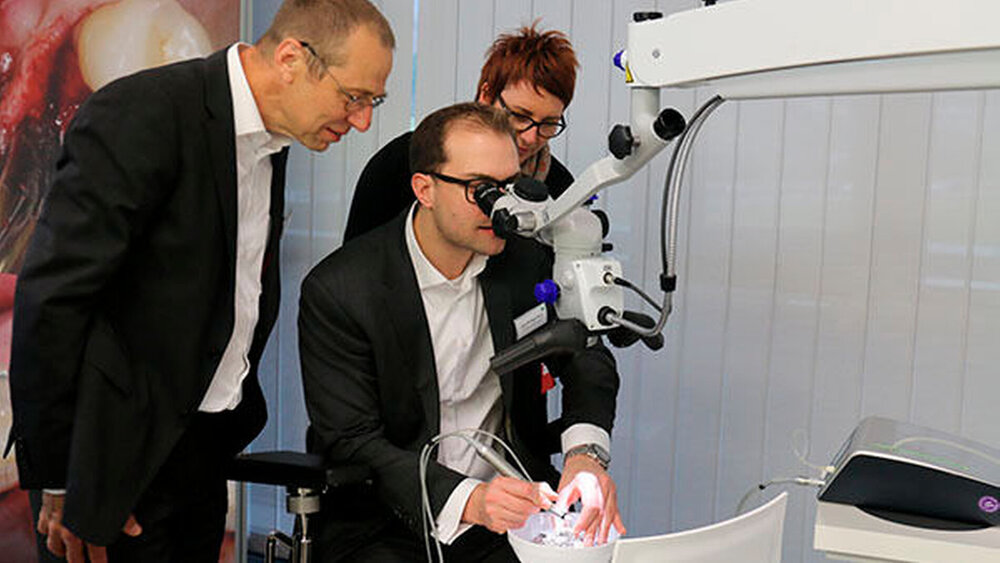 Für Prof. Dr. Gabriel Krastl, Würzburg, war der Einsatz der Mikroskoptechnologie zudem in der Kariesdiagnostik, bei posterioren und ästhetischen Restaurationen oder bei Verletzungen der vitalen Pulpa denkbar. „Vor allem Zahnärzte ab einem Alter von 40 Jahren können von der Vergrößerung profitieren“, berichtete Krastl. Seiner Meinung nach eigne sich die Technik aber auch gut zur Ausbildung von Zahnmedizinstudenten oder für die Patientenkommunikation.