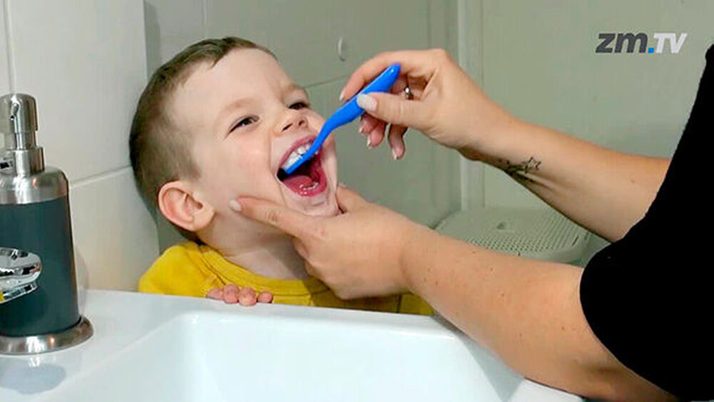 Bis zum 7. Lebensjahr sollten Kinder beim Zähneputzen begleitet werden. Erst dann sitzt das Gelernte. In diesem kurzen Video sehen Sie, wie der zweijährige Ben dabei unterstützt wird.