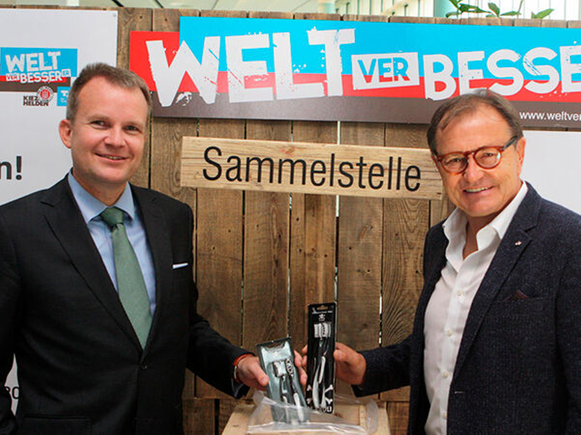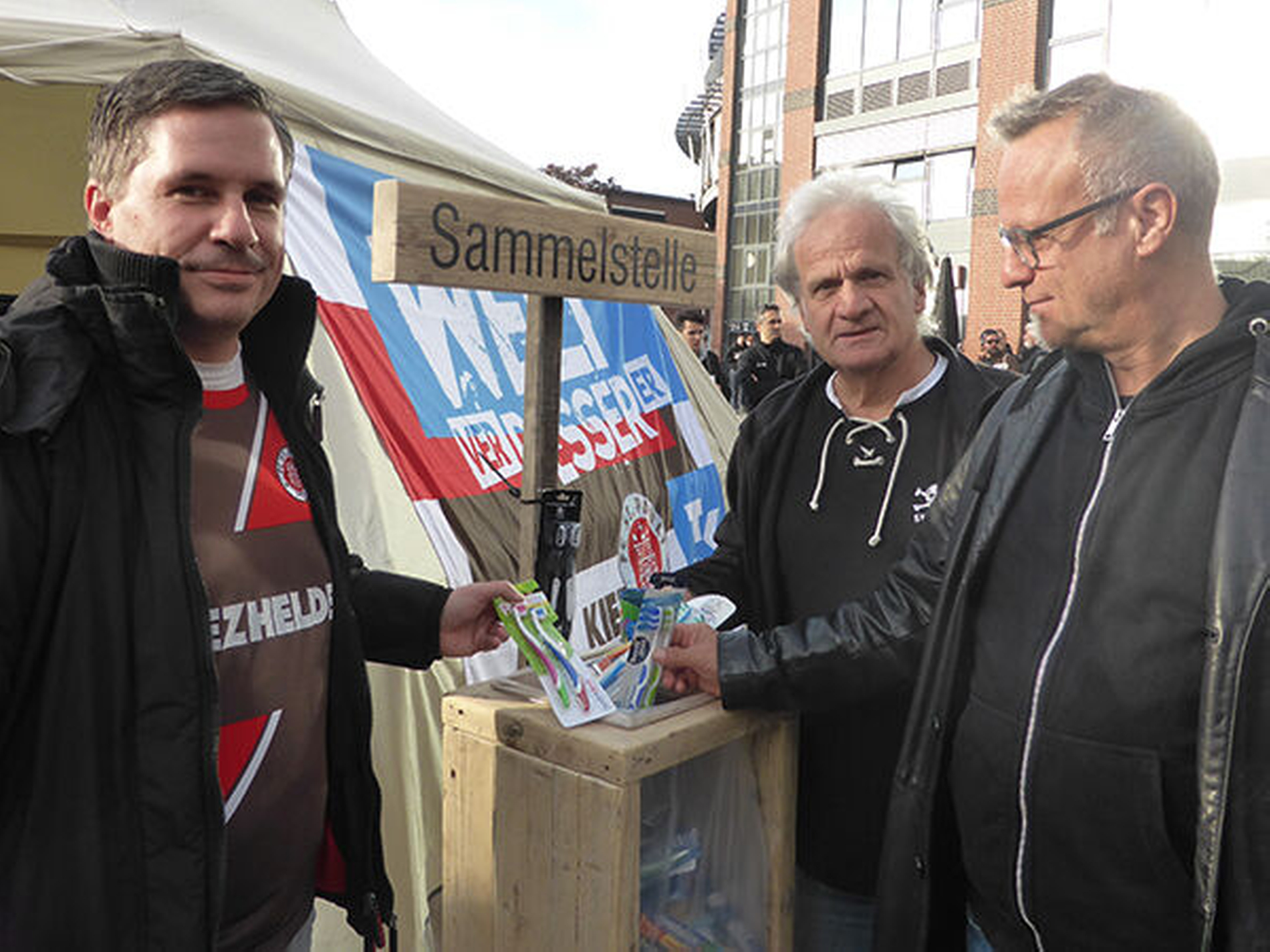 Auch der Technische Direktor des FC St. Pauli, Ewald Lienen, sowie der Vorstandsvorsitzende der Techniker Krankenkasse, Dr. Jens Baas, spendeten ihre Zahnbürsten. Die Techniker Krankenkasse und die sogenannten Kiezhelden, das Dach für gesellschaftliches Engagement beim FC St. Pauli, haben die Initiative ins Leben gerufen. Unter dem Slogan "Weltverbesserer" geht es genau um das: die Welt jeden Tag ein wenig besser zu machen.
