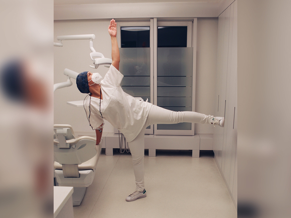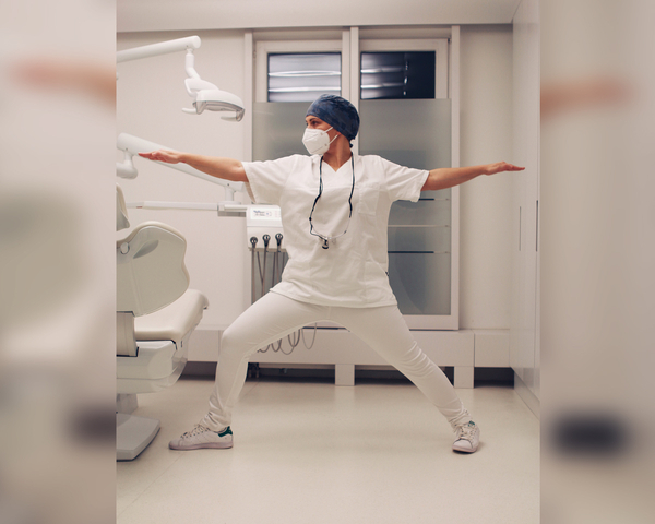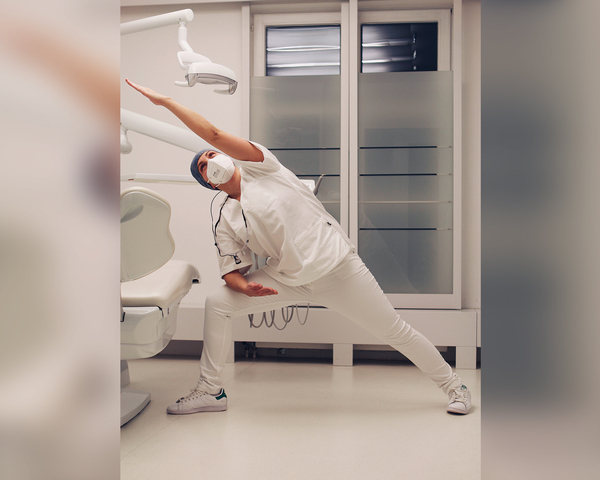 Wie kleine Yoga-Pausen Ihre Leistungsfähigkeit unterstützen können, zeige ich Ihnen anhand von für den Praxisalltag modifizierten Übungen. Dazu gehören Atemübungen, Yogahaltungen, Entspannungsübungen und zwei kleine Impulse, die Sie sogar während der Behandlung anwenden können. Diese Übungen lassen sich vereinzelt über den Tag verteilen oder direkt aufeinander folgend durchführen, sogar mit FFP2-Maske, Lupenbrille und in Praxiskleidung.