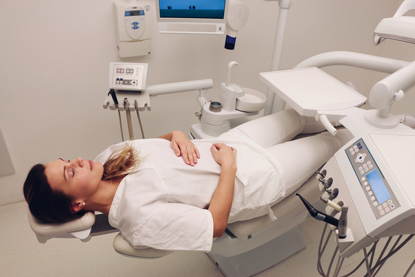 Die folgenden zwei Yoga-Impulse lassen sich besonders gut in den Arbeitsalltag integrieren: Beobachten Sie Ihren Atem immer dann, wenn eine kleine Pause im Praxisalltag entsteht, etwa während eine Füllung lichtgehärtet wird oder das Abformmaterial abbindet (Abb. 8a). Aktivieren Sie jedes Mal, wenn Sie zur Luftwasserspritze greifen, Ihre untere Bauchmuskulatur. Nehmen Sie wahr, wie sich Ihre Wirbelsäule dabei wie von allein aufrichtet (Abb. 8b).