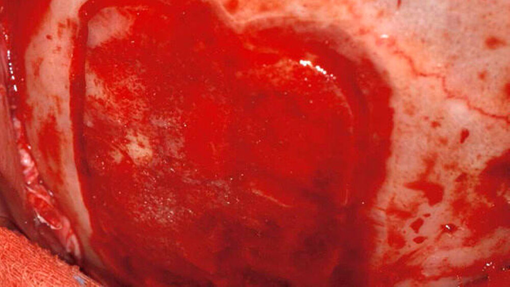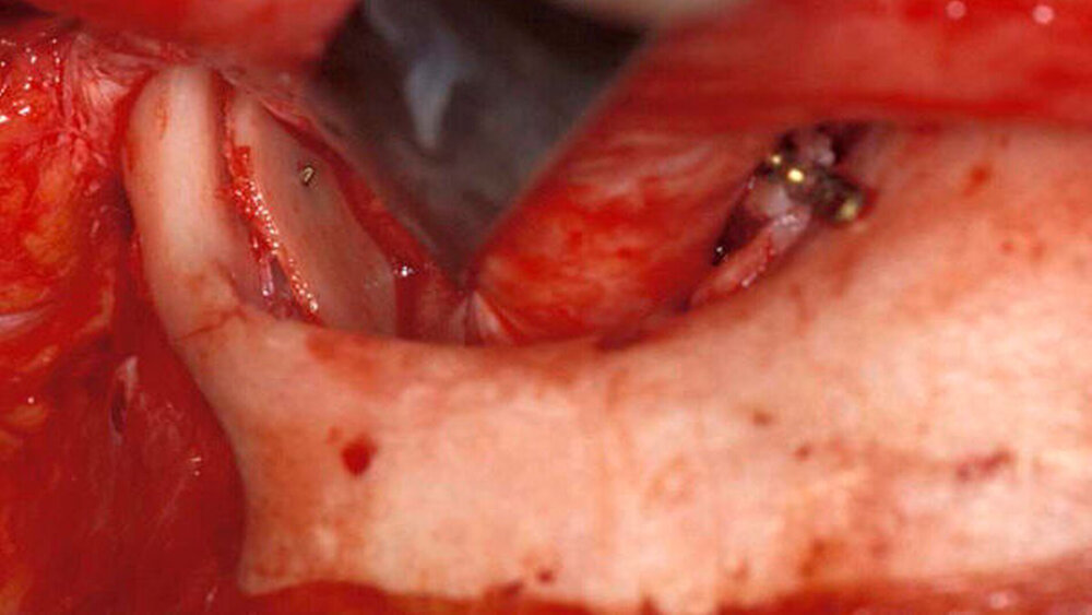 Um das eingesunkene Auge auszugleichen, planten die MKG-Chirurgen hierfür die Rekonstruktion einer neuen knöchernen Augenhöhle mit einem sogenannten Tabula externa-Transplantat - die Tabula externa ist die Knochenschicht an der Außenseite des Schädeldachs. Hierzu entnehmen sie einen Teil des äußeren Schädelknochens und modellieren damit aufwendig die neue Augenhöhle.