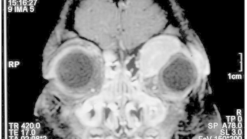 Beim Rhabdomysarkom handelt es sich um einen extrem bösartigen Weichteiltumor, der von entarteten Zellen der Skelettmuskulatur ausgeht. Er ist mit durchschnittlich 56 Neuerkrankungen pro Jahr der häufigste Weichteiltumor bei Kindern bis zu einem Alter von 15 Jahren. Bei bis zu 14 Kindern pro Jahr liegt der Primärtumor in der Augenhöhle.