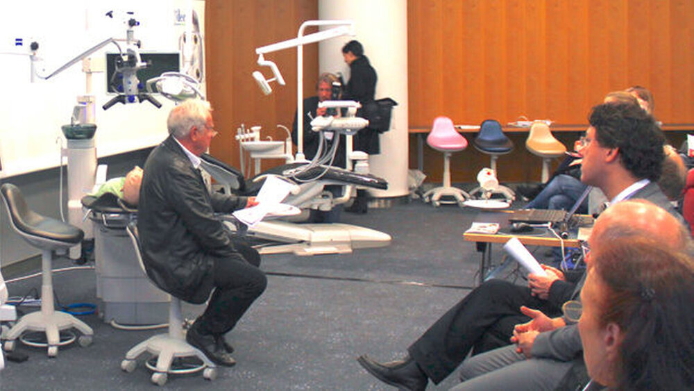 Dr. Wolf Neddermeyer (Wiesbaden) referierte zum Thema „Mit dem Mundspiegel Rückenschmerzen verhindern - die Systematik der 12-Uhr-Behandlung." Viele Zahnärzte leiden aufgrund falscher Körperhaltung bei der Behandlung unter Rückenschmerzen. Neddermeyer erklärte, wie dem mithilfe des Dr. Daryl Beach-Konzepts und der ergonomischen Behandlungseinheit Spaceline EMCIA entgegengewirkt werden könne. Von Bedeutung sei hierbei insbesondere auch eine geübte Spiegelführung. Diese müsse man wie alle Arbeitsbewegungen durch kontinuierliches Training automatisieren und verinnerlichen. Er verwies dabei auch auf Kurse, die er gemeinsam mit Morita zum Thema gesunde Behandlungshaltung anbiete. Hier können Interessierte eine symmetrische, ausgewogene und ermüdungsarme Arbeitsweise in optimalen Sehabstand erlernen.