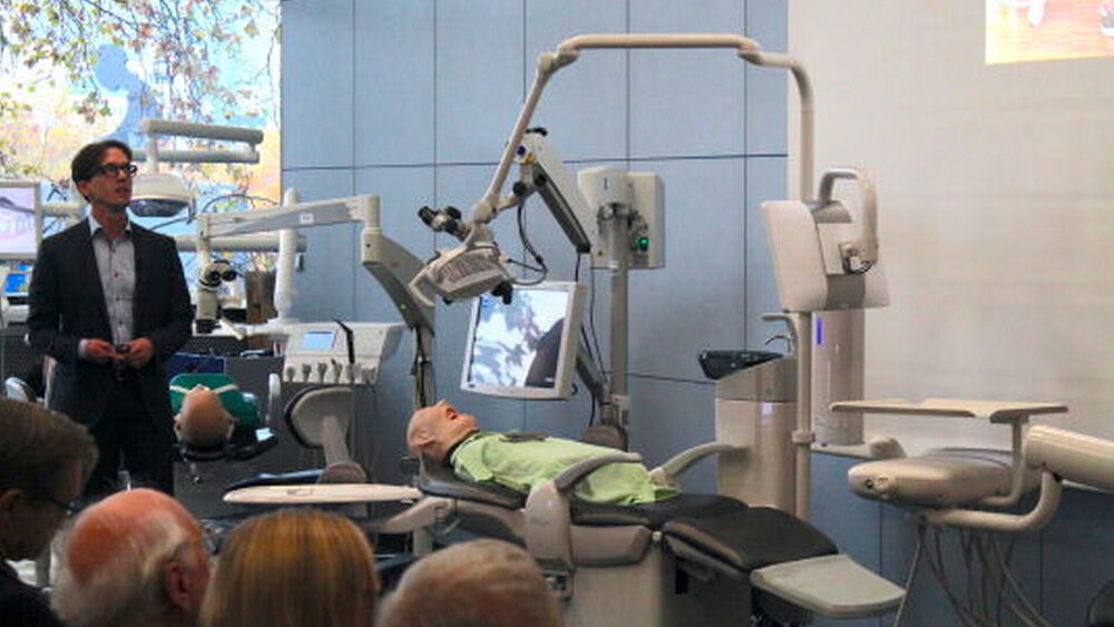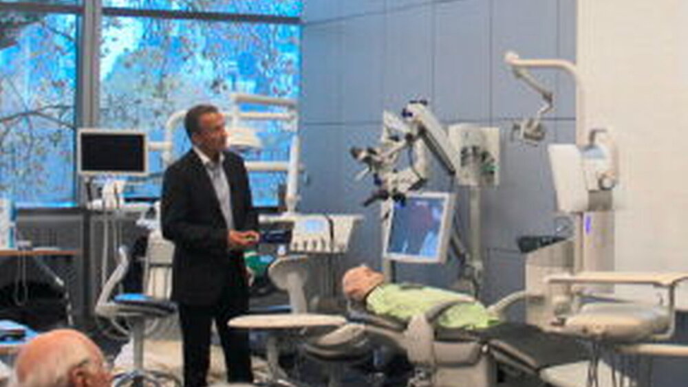 Dr. Tom Schloss (Nürnberg) präsentierte zum Thema: „Ergonomisch arbeiten am Operationsmikroskop" und veranschaulichte eindrucksvoll die Leistungsfähigkeit von Operationsmikroskopen. Vorzüge böte die Arbeit mit dem Mikroskop beispielsweise in Bezug auf die Haltung: Aus der 12-Uhr-Position heraus kann der Behandler eine aufrechte und rückenschonende Position einnehmen. Unterstützt wird dies durch speziell auf diese Behandlungsposition abgestimmte Behandlungseinheiten. Ein Vorteil sei darüber hinaus, dass man „mehr sehe“. So ließen sich beispielsweise Cracks unter dem Mikroskop einfacher erkennen und in der Patientenkommunikation könne man sehr eindrucksvoll die „Bilder sprechen lassen“.