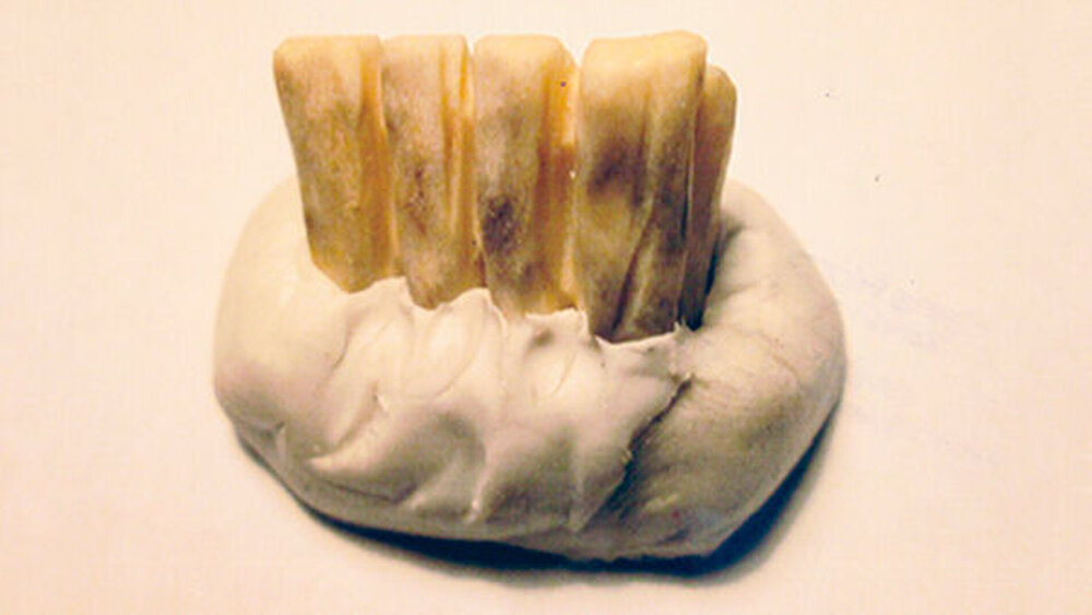 Zahnarzt Hans Horn aus Würzburg berichtet: "Wir schrieben das Jahr 1945. Ich erinnere mich noch sehr genau an die Schnitzarbeit eines älteren Oberförsters aus dem Spessart, der in Würzburg seinen "Zahnersatz", gefertigt aus einem Geweihrest, auf dem Schwebetisch meines damaligen Chefs ablegte. Wir Praktikanten durften das Kuriosum bestaunen!