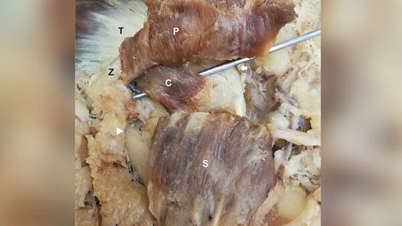 Mezey: Ja, wobei ich zunächst damit gerechnet habe, keine neue Muskelschicht, sondern eher anatomische Varianten zu entdecken. Dafür habe ich bei der Präparation zunächst den Masseter Schicht für Schicht abgelöst. Was mich überrascht hat, war, dass ich in der Tiefe immer diesen ganz anderen Verlauf der Fasern gefunden habe. Der Muskel konnte auch in den Computertomogrammen gesehen werden. Es gab auch schon andere Autoren, die diesen Verlauf beschrieben haben, allerdings hat niemand sich eingehender damit befasst. Wir haben diese Wissenslücke gefüllt und wissen jetzt, dass es eine dritte Schicht des M. masseter gibt. Wir vermuten, dass der Pars coronoidea dem tiefen Anteil des M. zygomaticomandibularis entspricht.