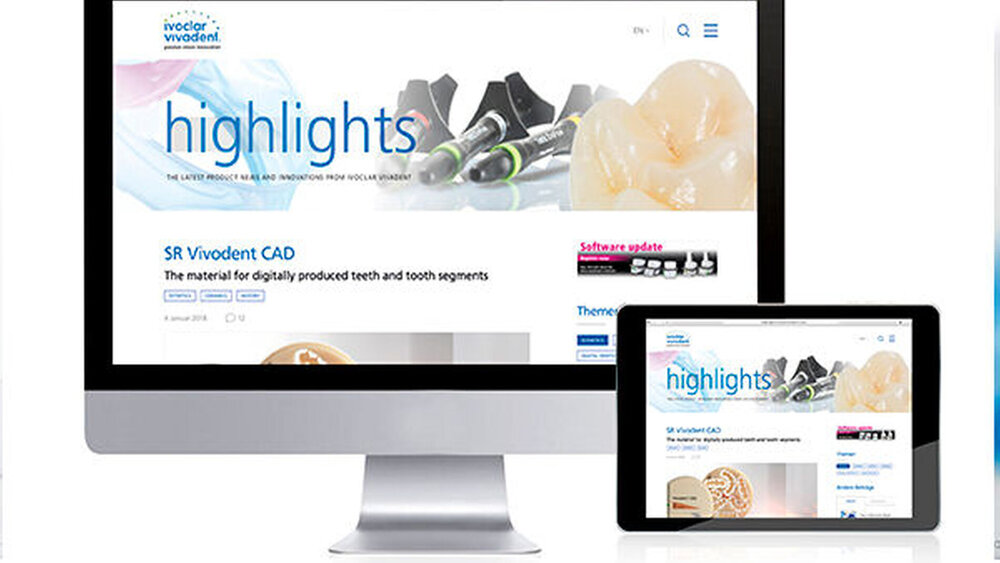 Wie der bereits existierende Blog ist auch das neue Produktportal in den fünf Sprachen Englisch, Deutsch, Italienisch, Französisch und Spanisch verfügbar. Ausserdem gibt es auch hier eine Unterteilung gemäss den zwei Zielgruppen des Unternehmens: Eine Sparte spricht Zahnärzte, die andere Zahntechniker an. Auf diese Weise erhalten beide Zielgruppen die für sie relevanten Informationen auf direktem Weg. Link: