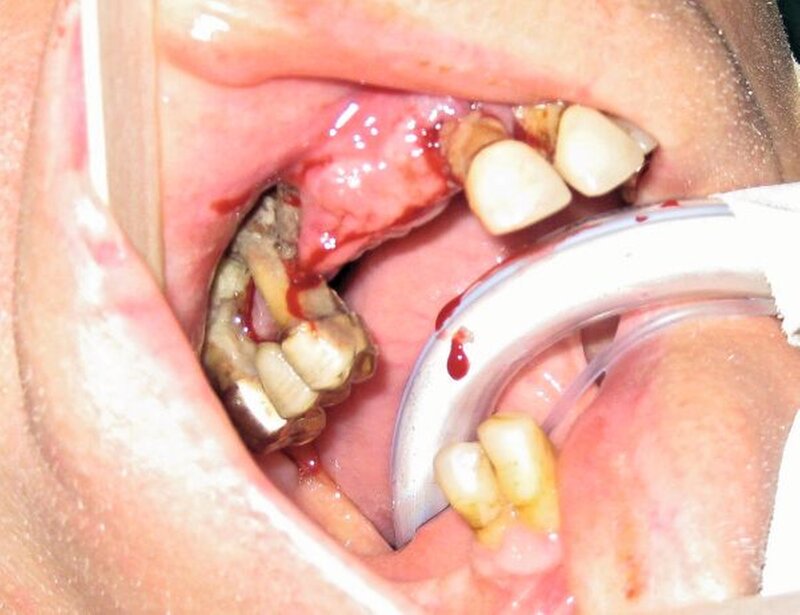 Ein 62-jähriger Patient stellte sich im Januar 2011 in der Poliklinik für Mund-, Kiefer- und plastische Gesichtschirurgie der Universitätsklinik Frankfurt am Main vor. Der Patient hatte seit etwa drei Monaten einen putriden Ausfluss aus dem rechten Nasenloch bemerkt, der vor allem nachts auftrat, sowie eine starke Zahnlockerung und einen spontanen Zahnverlust. Außerdem wurde er seitens seiner Ehefrau auf starken Mundgeruch hingewiesen, den er persönlich nicht wahrnahm.