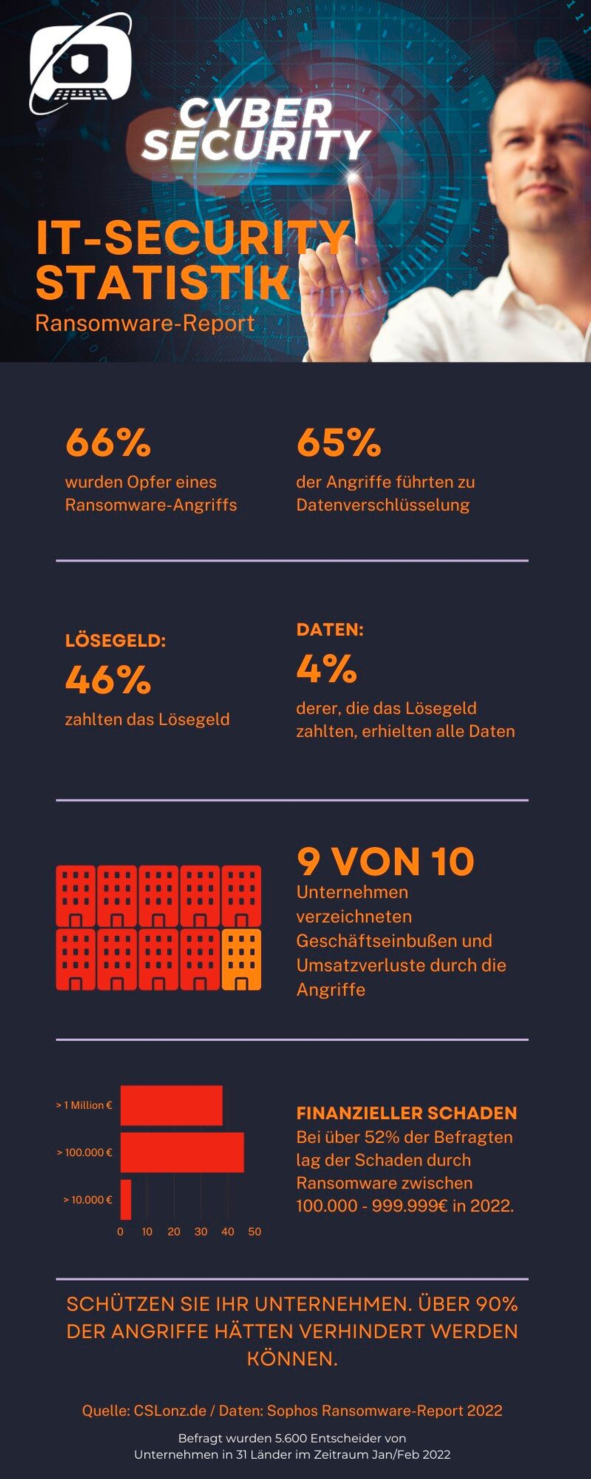 Auch Lonz rät übrigens eindringlich davon ab, Lösegeld zu bezahlen. Er verweist auf Statistiken von Sophos, wonach nur etwa vier Prozent aller Lösegeldzahler ihre Daten zurückbekämen. Die meisten erhielten sie gar nicht oder nur sehr unvollständig zurück. Das sei auch der Grund, warum man mit Hackern nicht verhandelt. „Solange es Menschen gibt, die Lösegeld bezahlen, werden Hacker dies gegen Unternehmen anwenden. Sobald sich aber alle darauf verständigen, das nicht mehr zu tun, fehlt das Druckmittel und die Angriffe hören auf", meint Lonz. Daher sei aktuell auch immer wieder in der Diskussion, ob das Zahlen von Lösegeld unter Strafe gestellt wird. Auch, wenn das rechtlich schwierig erscheint, der Gedanke ist nachvollziehbar und zeigt, wie hilflos Opfer meist sind. „Der neueste Clou ist, dass die Hacker selbst drohen, den Vorfall der Datenschutzbehörde zu melden. Das macht Opfern Angst und sie bezahlen, dabei sind sie ohnehin verpflichtet, den Vorfall anzuzeigen“, erklärt Lonz.