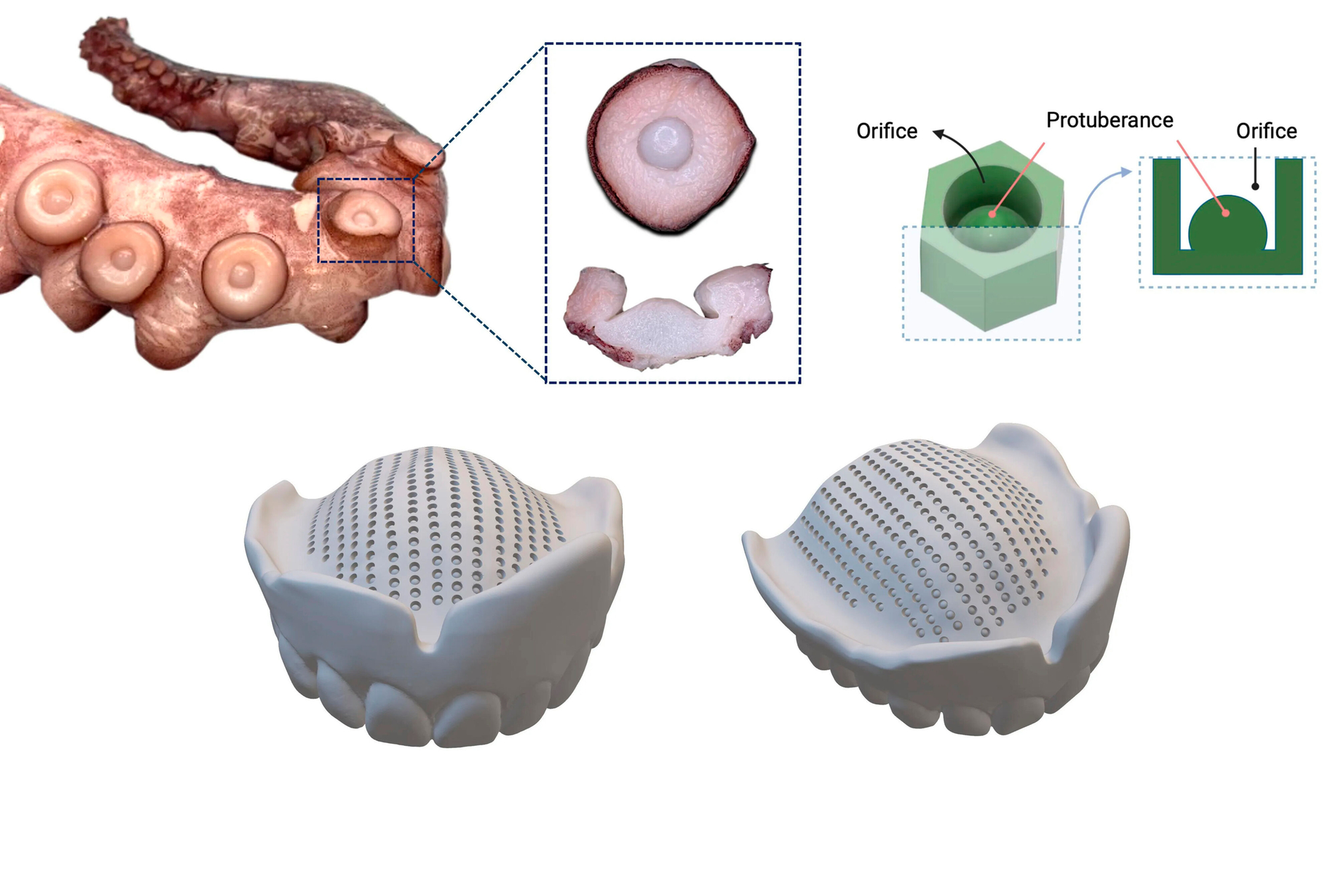 „Diese Forschung verbindet Natur und Technologie, um eine seit langem bestehende Herausforderung für Zahnprothesenträger anzugehen“, sagt Hauptautor Dr. Sherif Elsharkawy, Leiter der Abteilung Prothetik am King's College London. „Indem wir die ausgeklügelten Haftstrategien von Oktopus-Saugnäpfen nachahmen, haben wir einen Prototypen entwickelt, der selbst in den anspruchsvollsten Mundumgebungen verbesserten Halt und Komfort bietet.“