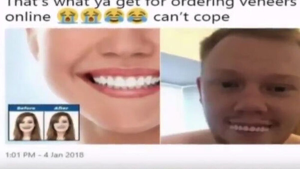 Ben Watson aus Halifax, West Yorks, hatte die Perfect Smile Veneers bei wish.com entdeckt. Die Firma wirbt auf ihrer Website für das "Millionen-Dollar-Lächeln für nur 14,99 $!" Neben verschiedenen Vorher-Nachher-Bildern preist der Hersteller die Vorteile der Veneers: "Nie wieder peinlich sein!", "Gut aussehen auf Fotos" und "ein Muss für Termine und Vorstellungsgespräche". Ben war begeistert.