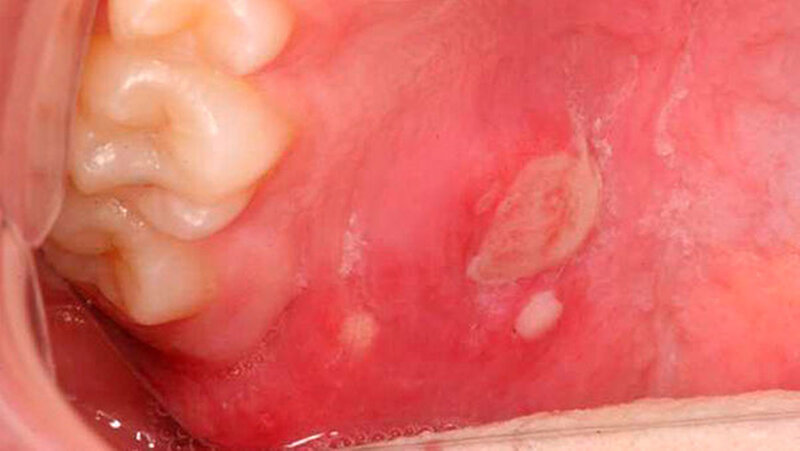Auch thermische Irritationen (Getränke oder Medikamente ) könnten zu einer Läsion der Mundschleimhaut sowie Verletzungen durch harte Nahrung (Brotkrusten) führen, was berücksichtigt werden müsste.