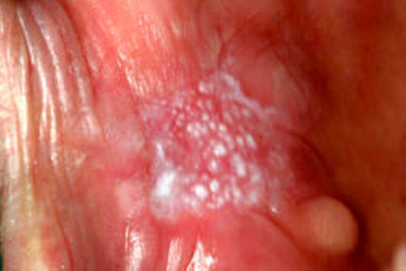 Eine höhere Transformationsrate scheint bei Candida-infizierten O.L. vorzuliegen. Bis heute besteht keine Einigkeit dazu, ob diese Veränderung als Candida-Leukoplakie oder als hyperplastische Candidiasis zu bezeichnen sei. Auch ist unklar, ob die Candida-Infektion die Ursache der Leukoplakie ist oder ob es sich um eine Superinfektion einer präexistenten Schleimhautveränderung handelt. Neben Tabak und Alkohol wurde immer wieder die Rolle humaner Papillomviren (HPV) und anderer Viren als möglicher Faktor diskutiert. Hochrisiko-HPVs wie HPV 16 und 18 sind mit dem Mundhöhlenkarzinom assoziiert [16-18]. Andere Faktoren wie der bereits erwähnte Alkohol, schlechte Ernährungsgewohnheiten, Vitaminmangel (Vitamin A, C) Arecanuss (Betel), unterschiedliche Mundspülungen, chronisch traumatische Irritationen, schlechte Mundhygiene, niedriger sozio-ökonomischer Status, Galvanismus und genetische Faktoren sind als mögliche Begleitfaktoren für die Entstehung eines O.L. diskutiert worden.