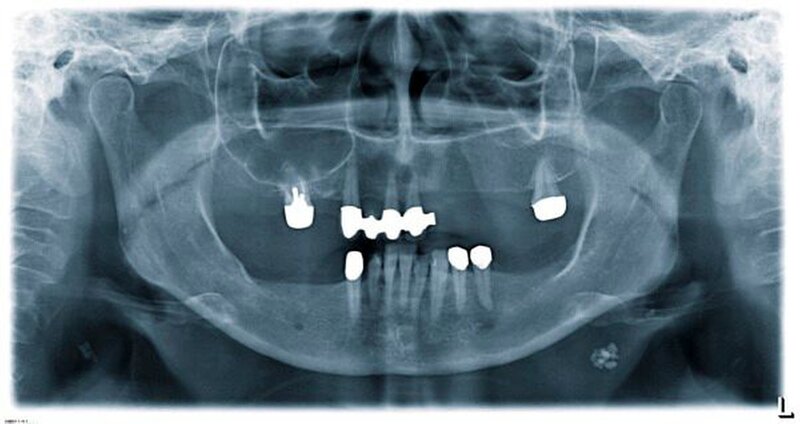 Eine 49-jährige Patientin stellte sich in der Schmerzambulanz zur weiteren Therapie vor. Aufgrund einer submukösen Abszedierung in regio 045 und eines Wurzelrestes in regio 027 wurde ein Orthopantomogramm zur weiteren Diagnostik angefertigt (Abbildung 1).