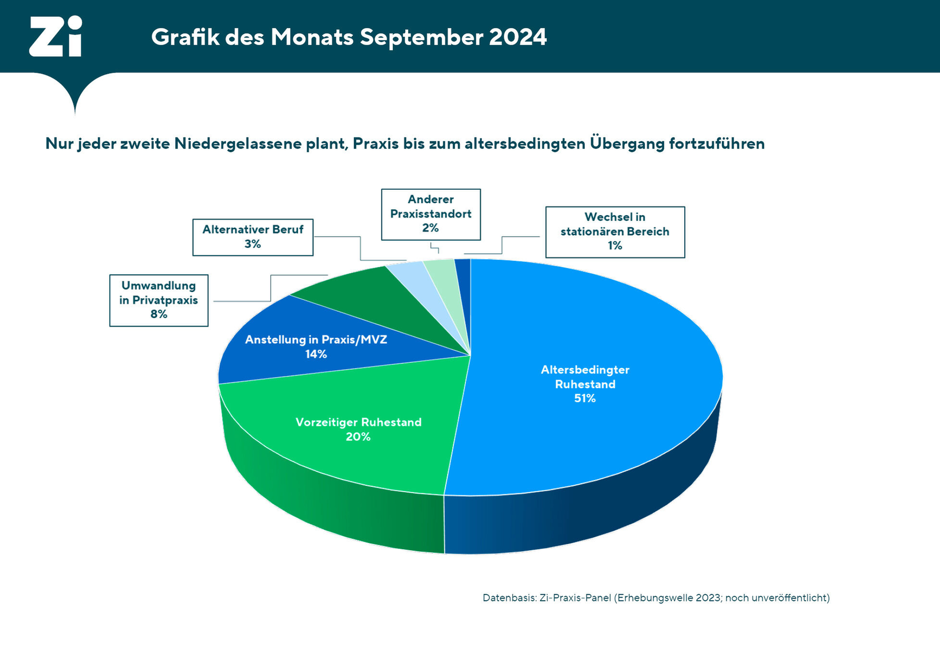 Das sind die Ergebnisse einer aktuellen Schwerpunktauswertung, die das Zentralinstitut für die kassenärztliche Versorgung (Zi) im Rahmen des Zi-Praxis-Panels (ZiPP) 2023 vorgenommen hat. Von den 68.000 angeschriebenen niedergelassenen Ärztinnen und Ärzten sowie Psychotherapeutinnen und -therapeuten machten mehr als 4.000 Praxisinhaberinnen und -inhaber bei der aktuellen ZiPP-Befragung Angaben zur Praxisübergabe. Davon beschäftigen sich etwa 1.200 Teilnehmende intensiv mit dem Thema.