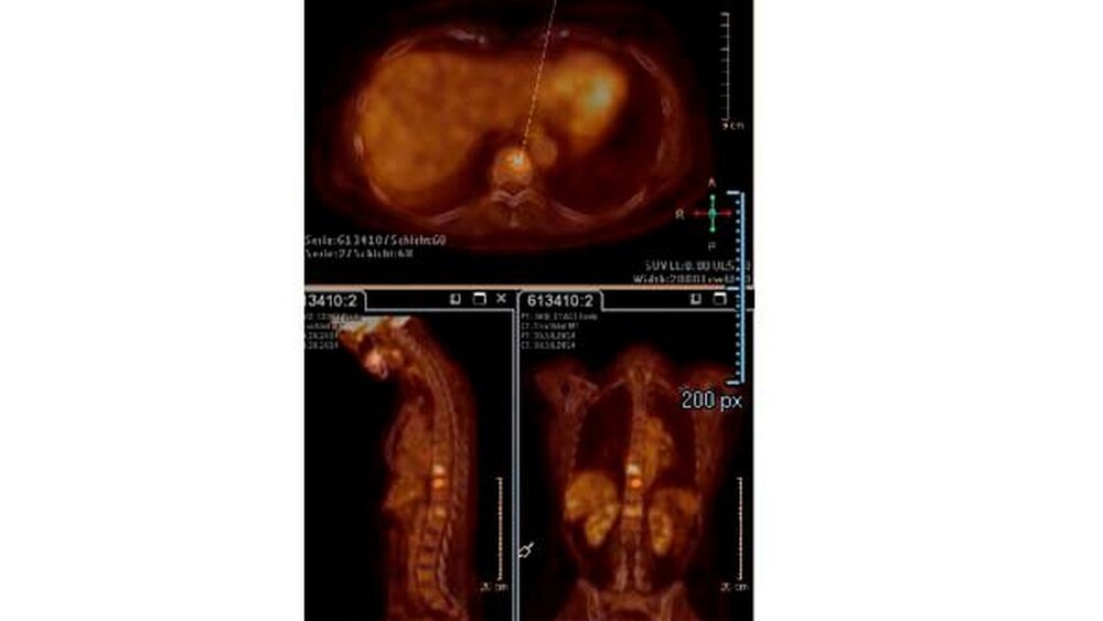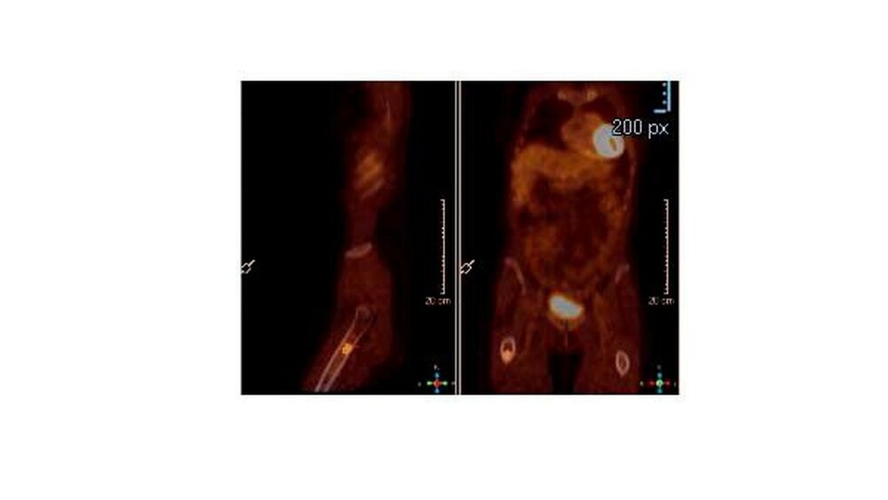 Um das weitere Wachstum und die Zerstörung im Knochen zu stoppen, waren neben der Tumortherapie die Behandlung mit hemmenden Zytostatika nötig. Das gelang ausgezeichnet, denn die ersten PET-CT Bilder stammen aus dem Jahr 2014 und die Knochenmetastasen sind seitdem nicht größer geworden.