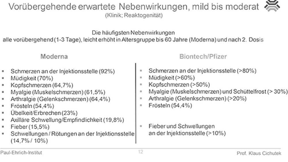 sstudien und zudem statistisch unauffällig. PEI-Präsident Klaus Cichutek betonte, dass die Risiken der beiden zugelassenen Impfstoffe nach bisherigen Stand „sehr, sehr begrenzt“ seien. Bisher gebe es auch keine Hinweise auf ein erhöhtes Risiko für allergische Reaktionen, sagte PEI-Expertin Brigitte Keller-Stanislawski