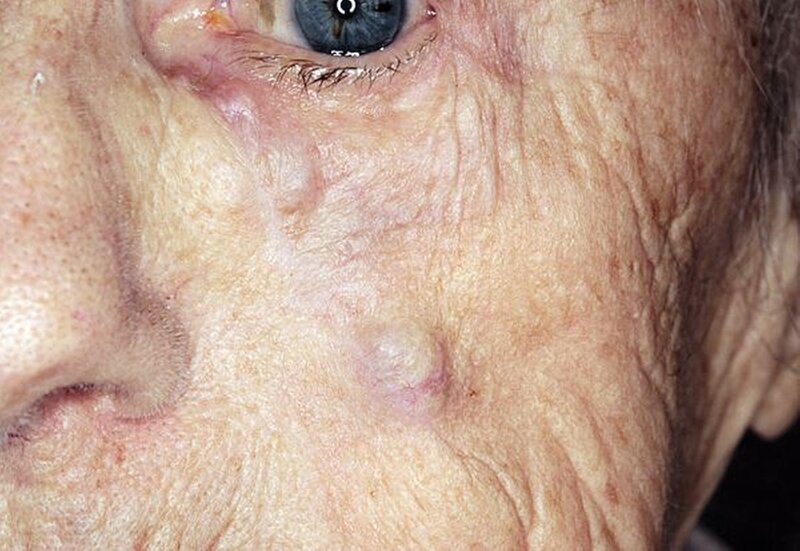 Eine 90-jährige Patientin wurde zur Abklärung der Möglichkeit einer chirurgischen Therapie bei einer erneut aufgetretenen Raumforderung im Bereich der linken Wange in die Regensburger Klinik für Mund-, Kiefer- und Gesichtschirurgie überwiesen. Die Patientin berichtete, erstmalig vier Jahre zuvor einen Knoten in diesem Bereich bemerkt zu haben. Im Verlauf seien drei operative Eingriffe zur Entfernung des Tumors durchgeführt worden. Nach dem letzten operativen Eingriff sei zunächst alles gut gewesen, seit einem Jahr bestünden jedoch zunehmende Schmerzen im Bereich der linken Gesichtshälfte mit einem Taubheitsgefühl der Oberlippe. Seit zwei Monaten bemerkte die Patientin erneut Knoten im Bereich der Narbe. Fremdanamnestisch war durch die Tochter zu erfahren, dass die Patientin im letzten Jahr zehn bis 15 kg an Gewicht verloren habe.