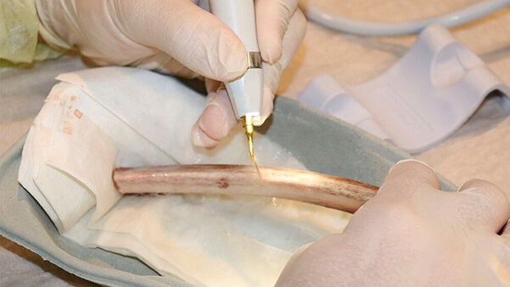 Im „Hands-On“-Teil des Workshops konnten die Zahnmedizinerinnen und Zahnmediziner einmal selbst PRF-Membranen und Sticky-Bone herstellen und einsetzen.