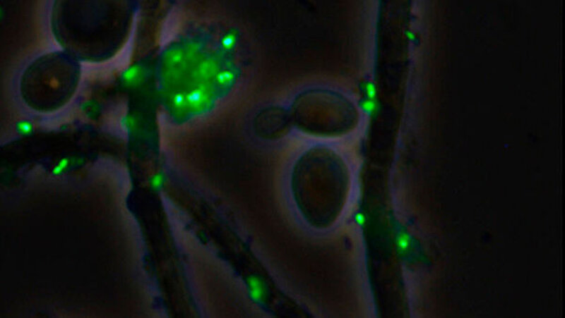 Darüber hinaus ist das Bakterium in Anwesenheit des Pilzes eher in der Lage fremdes Erbgut aufzunehmen. „So kann es sich neue Eigenschaften aneignen, wie beispielsweise Antibiotikaresistenzen“, sagt Sztajer. Auch die Produktion klebriger Substanzen, eine wichtige Vorraussetzung für die Haftung von S.mutans und der anderen Bakterien auf dem Zahn, wird durch den Pilz unterdrückt.