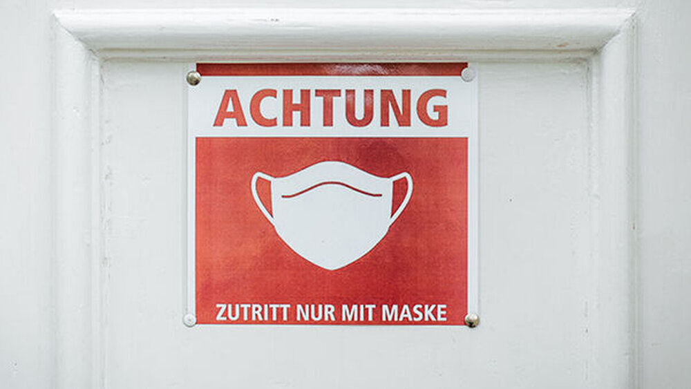 Plakate gegen die Maskenpflicht sind in der Praxis verboten