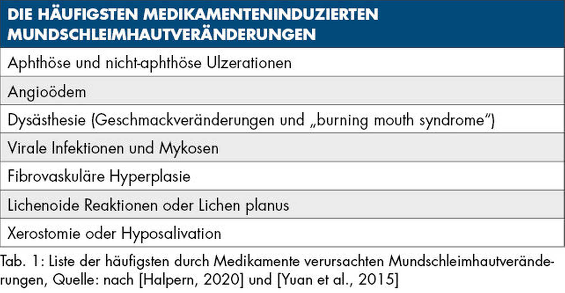 Neben den allgemeinmedizinischen Risikofaktoren einer Polypharmazie – darunter ein erhöhtes Risiko für Stürze, kognitive Störungen, Hospitalisierung und Mortalität [Mosshammer et al., 2016; Soto et al., 2021] – treten auch für die Zahnmedizin relevante Aspekte der Polypharmazie zutage. Mit dem im Jahr 2000 veröffentlichten „Surgeon General’s Report on Oral Health“ [U.S. Department of Health and Human Services, 2000] wurden erstmals die Relevanz der Mundhöhle als „Fenster zur Außenwelt“ und die Verbindung zwischen oraler und systemischer Gesundheit anerkannt. Mit über einhundert durch systemische Erkrankungen und fünfmal so vielen medikationsbedingten oralen Manifestationen stehen Zahnärzte vor einer wachsenden Herausforderung [Soto et al., 2021]. In klinischen Studien wurde außerdem eine reduzierte Mundgesundheit mit der gleichzeitigen und dauerhaften Einnahme von mehr als fünf Medikamenten in Verbindung gebracht [Nakamura et al., 2021; Anliker et al., 2023].