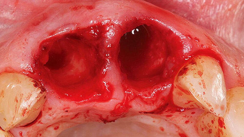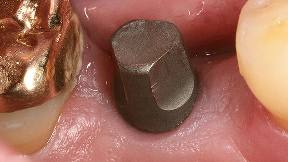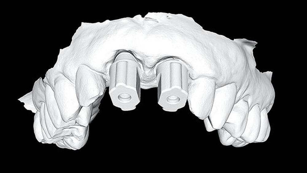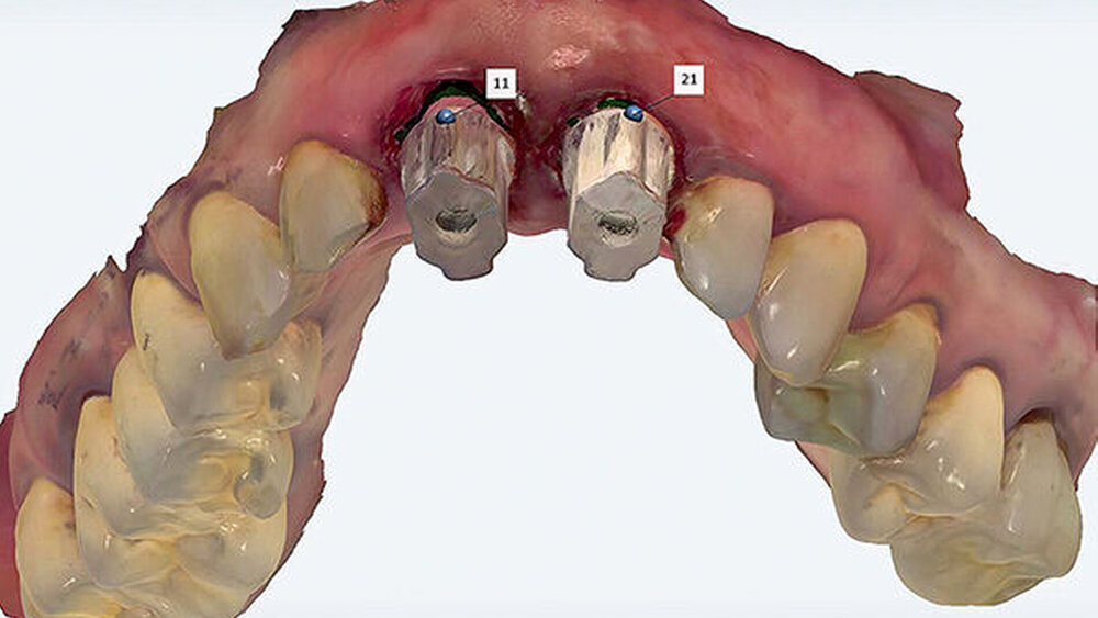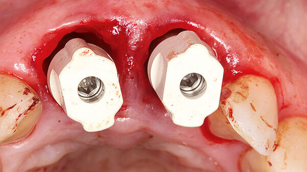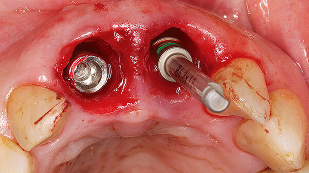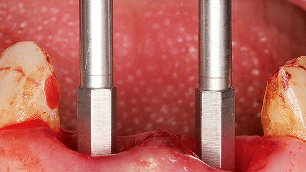 Das biologische, einteilig-transgingivale Implantat ist den mechanischen Einflüssen in der Mundhöhle ausgesetzt und benötigt bei geringer Primärstabilität (< 50 Ncm) unter Umständen eine zusätzliche Immobilisierung durch Verblockung mit den Nachbarzähnen oder Kronen. Der Scanner ist eine Möglichkeit der intraoperativen Abdrucknahme ohne die Gefahr der Inkontamination der Gewebesituation mit Abdruck- oder Provisorienmaterialien beziehungsweise der versehentlichen Inkorporation.