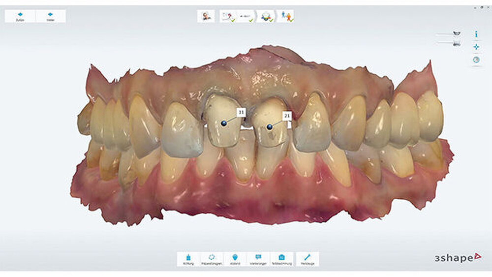 Noch nicht. Wir warten dringend auf das von 3Shape angekündigte Modul, das die Dokumentation des Gingivaverlaufs dokumentiert. Und dann können wir dem Patienten zum Beispiel die Progredienz einer Rezession oder parodontaler Erkrankungen demonstrieren und ihn motivieren, sich behandeln zu lassen, bevor noch mehr parodontales Gewebe zerstört ist.